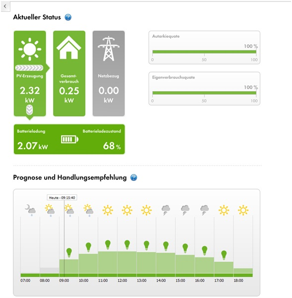 Tatsache ist, dass der Eigenverbrauch zu einem wichtigen Kriterium für die Planung und Auslegung von Solarstrom-Anlagen geworden ist und einen wesentlichen Einfluss auf ihre Rendite hat. Wer sich darauf einstellt und die Möglichkeiten des EEG nutzt, kann den erneuten Einschnitt bei der Solarstromförderung spürbar mildern und leistet gleichzeitig einen Beitrag zur Entlastung der Netzinfrastruktur. Nutzbar ist die Direktverbrauchsregelung nahezu für jeden: Je nach Anlagenleistung und Zahl der Haushaltsmitglieder liegt bereits die „natürliche“ Direktverbrauchsquote zwischen 30 und 60 Prozent. Durch Änderungen im Verbrauchsverhalten oder die Nutzung bereits vorhandener Schaltfunktionen ist dieser Wert noch um bis zu zehn Prozentpunkte steigerbar. Einen weiteren Beitrag kann das automatische Schalten von Verbrauchern durch ein intelligentes Energiemanagement leisten, sofern es neben der Erzeugungsleistung auch den aktuellen Verbrauch berücksichtigt.
