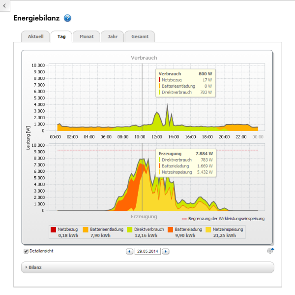 Die Energiebilanz zeigt ihnen detaillierte Werte und unterstütz Sie bei der Anpassung ihres Stromverbrauchs. So können Sie kinderleicht ihre Energienutzung anpassen und das Maximum aus ihrer Photovoltaikanlage holen.